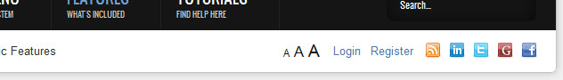 Easily link to a social media site with the built in social icons found in the header of this template. Simply enter the url of your social site in the configuration and the icon will automatically appear. To disable an icon simply leave the url blank for that particular icon.