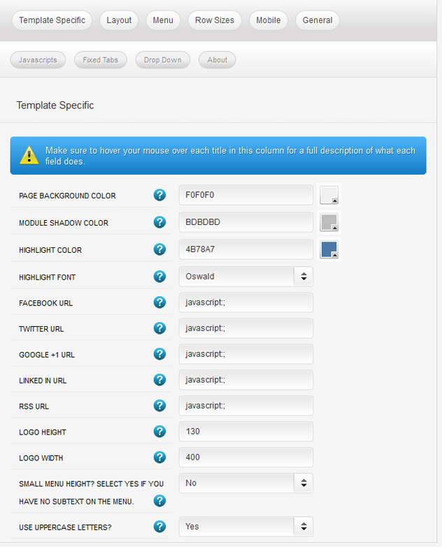 Need a little bit more room for your logo? That's simple, just enter in the dimensions you need to fit your log and the header will automatically adjust. Keep in mind that if you are using the banner position, that you will want to leave enough room for that module position.